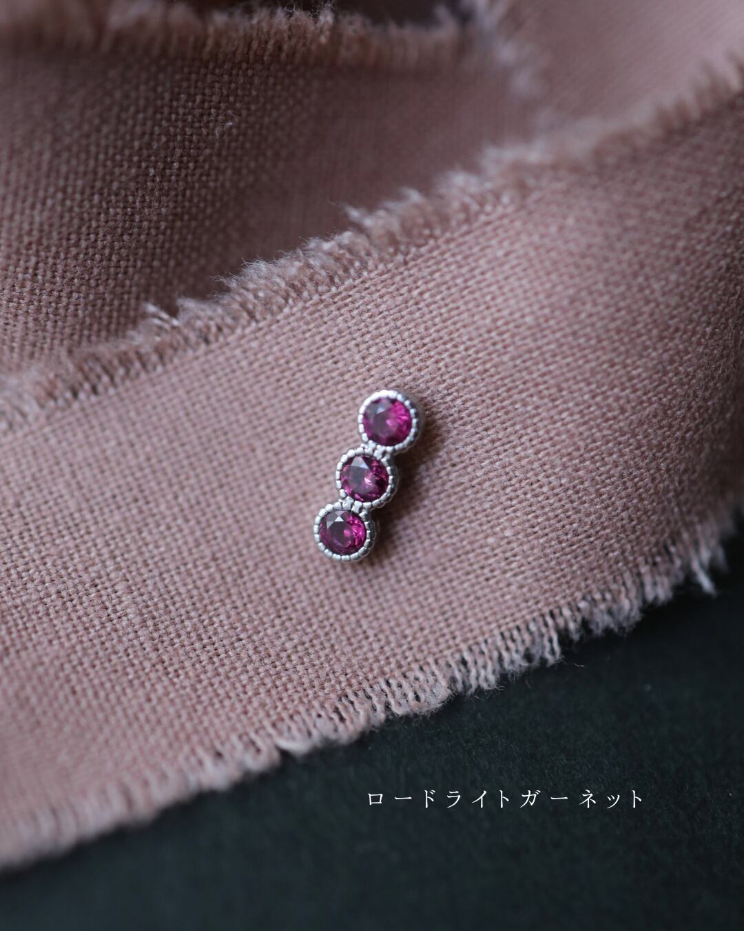一粒天然石ピアスの進化版、3連天然石ピアスが数量限定で登場です。