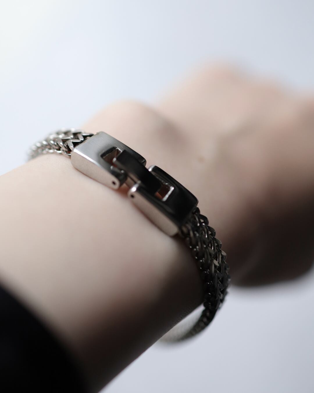 チェーンのようなデザインのステンレス製ブレスレットです。