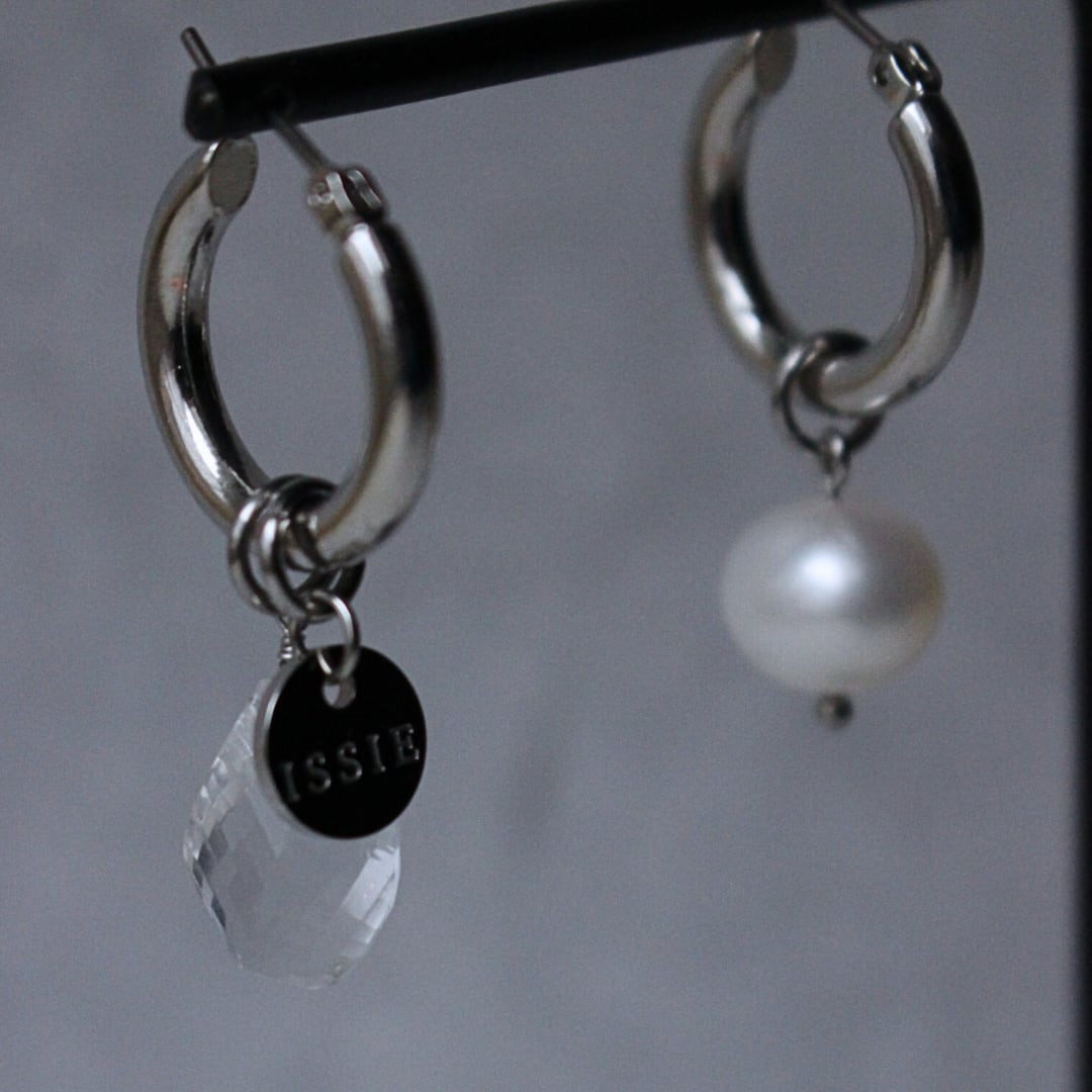 こちらは、高品質なツイスト型のクリスタルともっちりとしたおまんじゅう型がかわいい大粒パールを使用しています