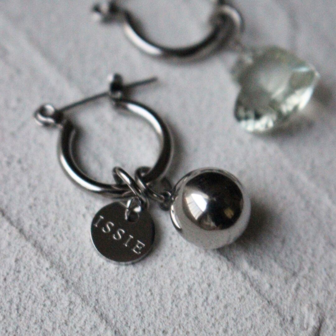 宝石カットの天然石は高品質ゆえ仕入れ価格も高いのですが、片耳のみに採用することで販売価格を抑えました